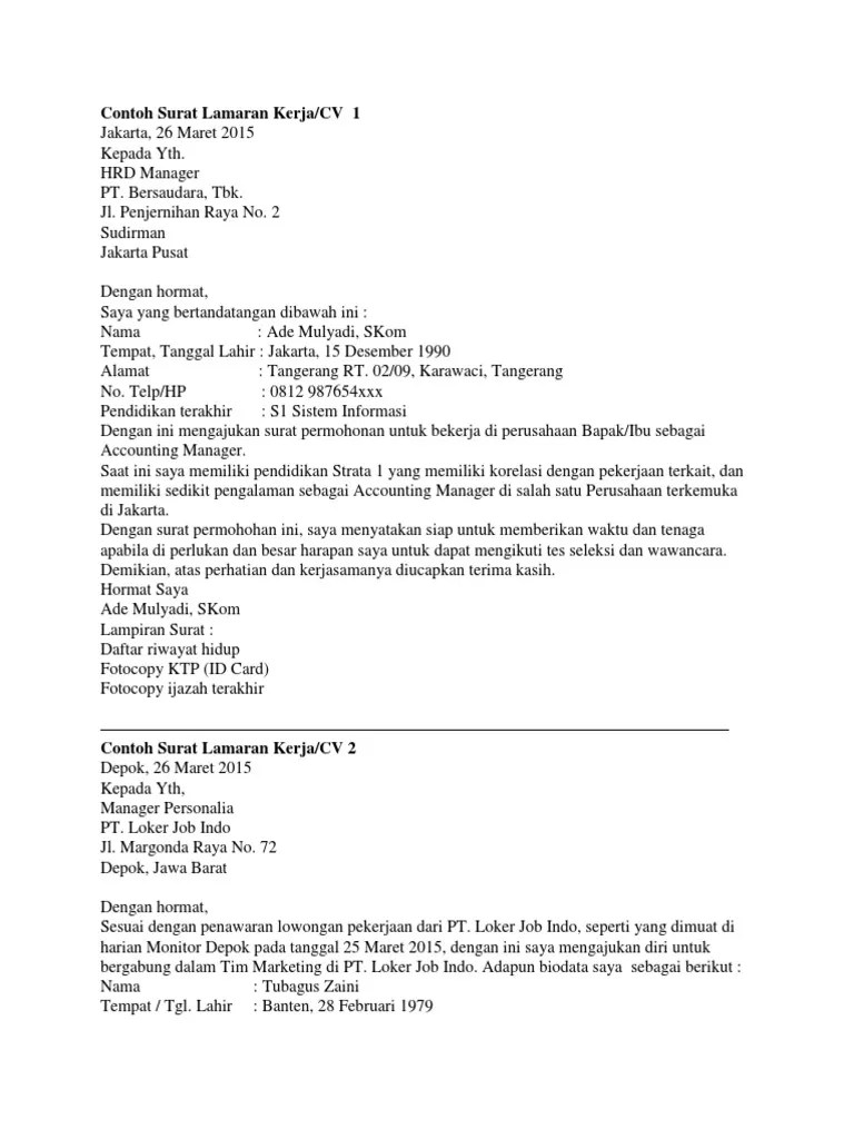 .proposal # contoh surat perjanjian # contoh surat pernyataan # contoh surat permohonan # contoh surat akta # contoh surat kuasa # contoh surat pengunduran diri # contoh surat lamaran kerja. Cara membuat cv lamaran kerja. Materi application letter materi surat lamaran kerja yang mudah dipahami cara menulis surat lamaran kerja dalam bahasa inggris contoh surat contoh surat lamaran kerja bahasa inggris yang ampuh. Ditulis secara detail dengan harganya. Surat lamaran kerja merupakan sebuah dokumen yang dikirim oleh seorang pencari kerja untuk dalam membuat surat lamaran kerja, anda disarankan untuk menggunakan tata bahasa yang baik. Surat lamaran kerja harus dipersiapkan bagi kamu yang sudah siap masuk ke dunia kerja. Format struktur surat lamaran kerja diatas dapat anda gunakan untuk melamar pekerjaan di rumah sakit mana saja. Surat lamaran kerja adalah surat yang digunakan untuk melakukan permohonan mendapatkan pekerjaan sesuai pengalaman 3 3. Jika anda baru saja lulus kuliah dan bersiap mencari pekerjaan. Format penulisan surat lamaran kerja, beberapa tips dan contoh surat lamaran kerja secara umum yang baik sebelum ke pembahasan utama mengenai contoh surat lamaran kerja, sebaiknya kita. Setelah menemukan lowongan yang sesuai dengan keinginan dan. Contoh cv lamaran kerja berikut dapat membantu mu untuk membuat curriculum vitae menarik. Ada juga contoh surat lamaran kerja simple siap download.