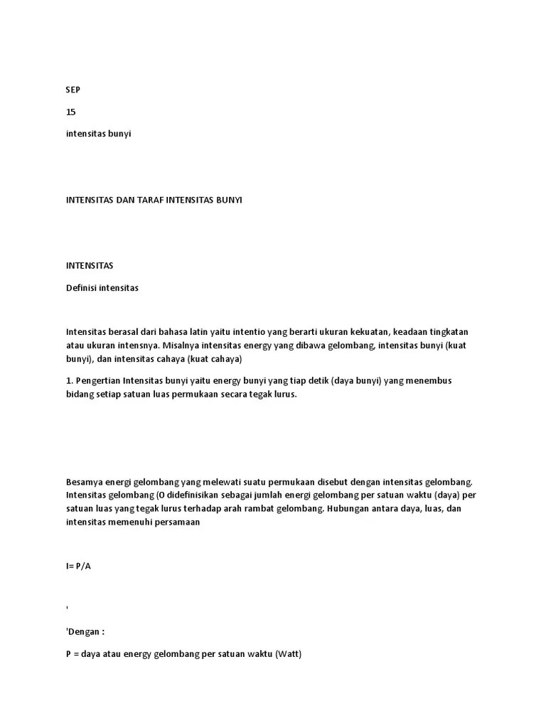 Berapakah besar intensitas (i) dan amplitudo (a) bunyi petasan yang didengar oleh bobi yang berada 90 m dibelakang ali? intensitas bunyi dapat ditingkatkan dengan…. Lebih dari dua gelombang yang sama frekuensinya Memperbesar frekuensi dan amplitudonya b. Ketika mendengarkan bunyi yang terlalu keras, tentunya telinga akan merasa sakit.